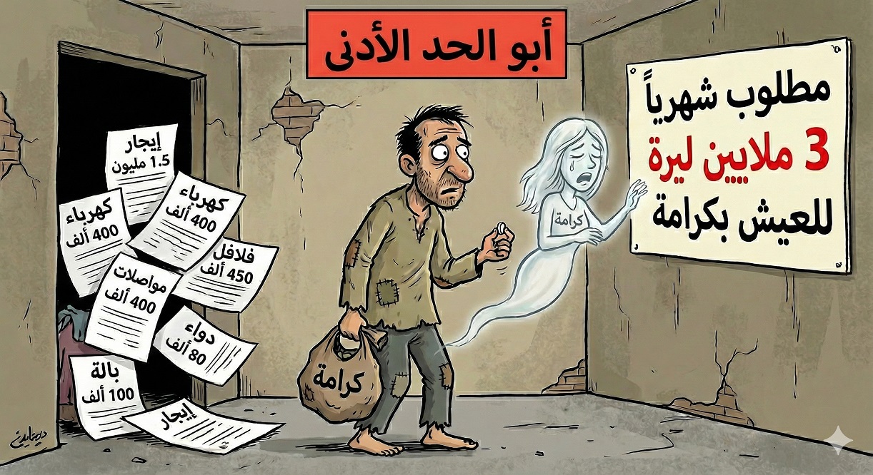 أنا “أبو الحد الأدنى”، مواطن عادي جداً، لا عندي طموح أهاجر، ولا حلم أفتح مشروع، ولا رغبة أعيش “بكرافت وربطة عنق”، عندي طلب واضح وبسيط وشبه مستحيل كمان “عيش بكرامة”.