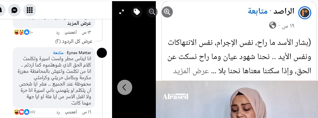 لم تسلم الناشطة “إيناس مطر” من حملة التضليل بعد خروجها بلقاء توضح فيه تفاصيل المجازر التي ارتُكبت في السويداء شهر تموز الجاري، ليشغل تعليقها على صفحة الصحفي “قتيبة ياسين” لاحقاً جدلاً واسعاً في مواقع التواصل الاجتماعي.