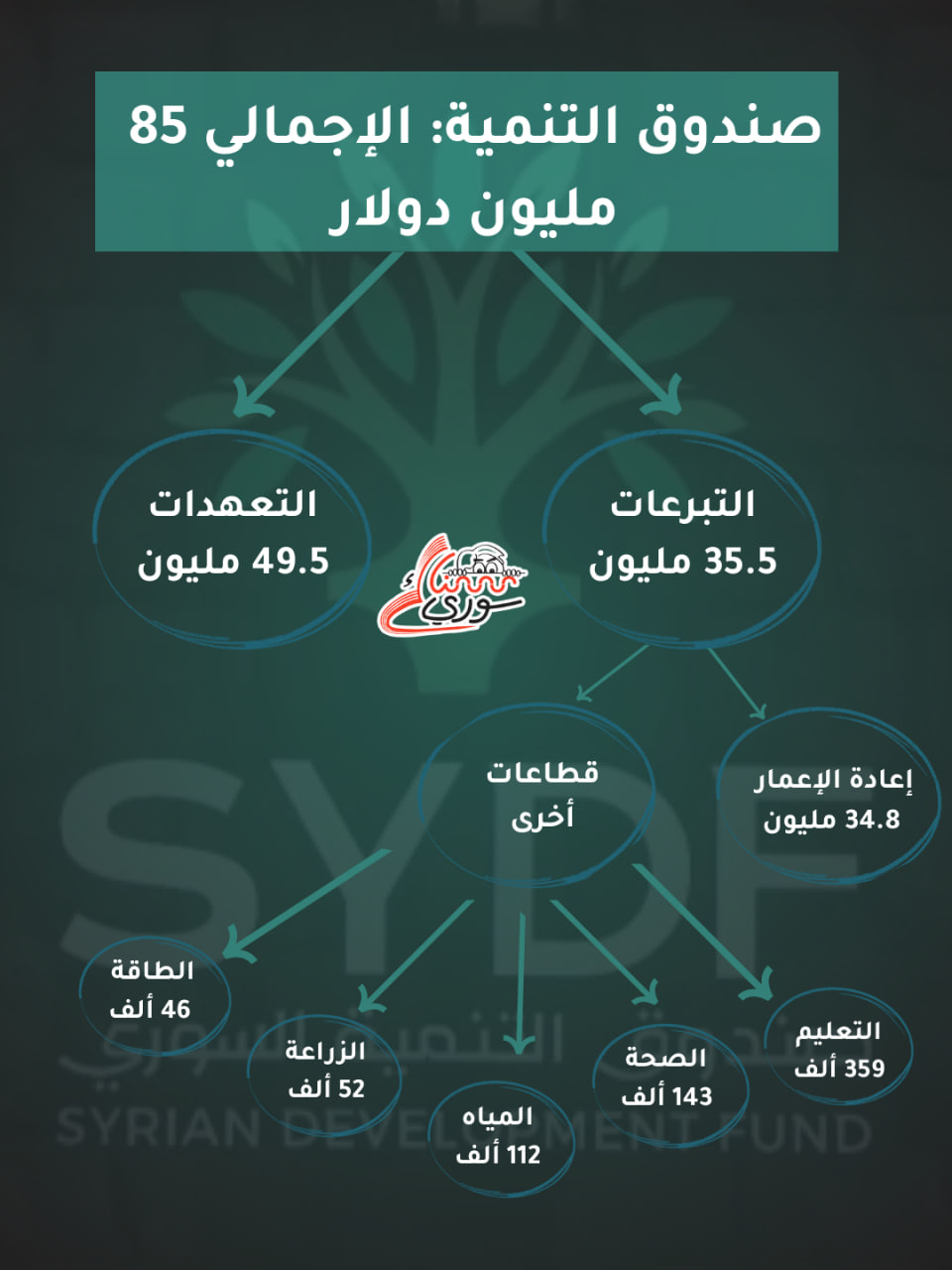 وباحتساب مجموع التعهدات والتبرعات الفعلية كاملةً في “صندوق التنمية” وكافة حملات التبرع في المحافظة فإن مجموع المبالغ يصل إلى مليار و101 مليون دولار، بينما تشير تقديرات البنك الدولي إلى أن إعادة إعمار البلاد تصل لأكثر من 216 مليار دولار، ما يعني أن كامل هذه التبرعات تساهم بنسبة 0.5% تقريباً في إعادة الإعمار.
