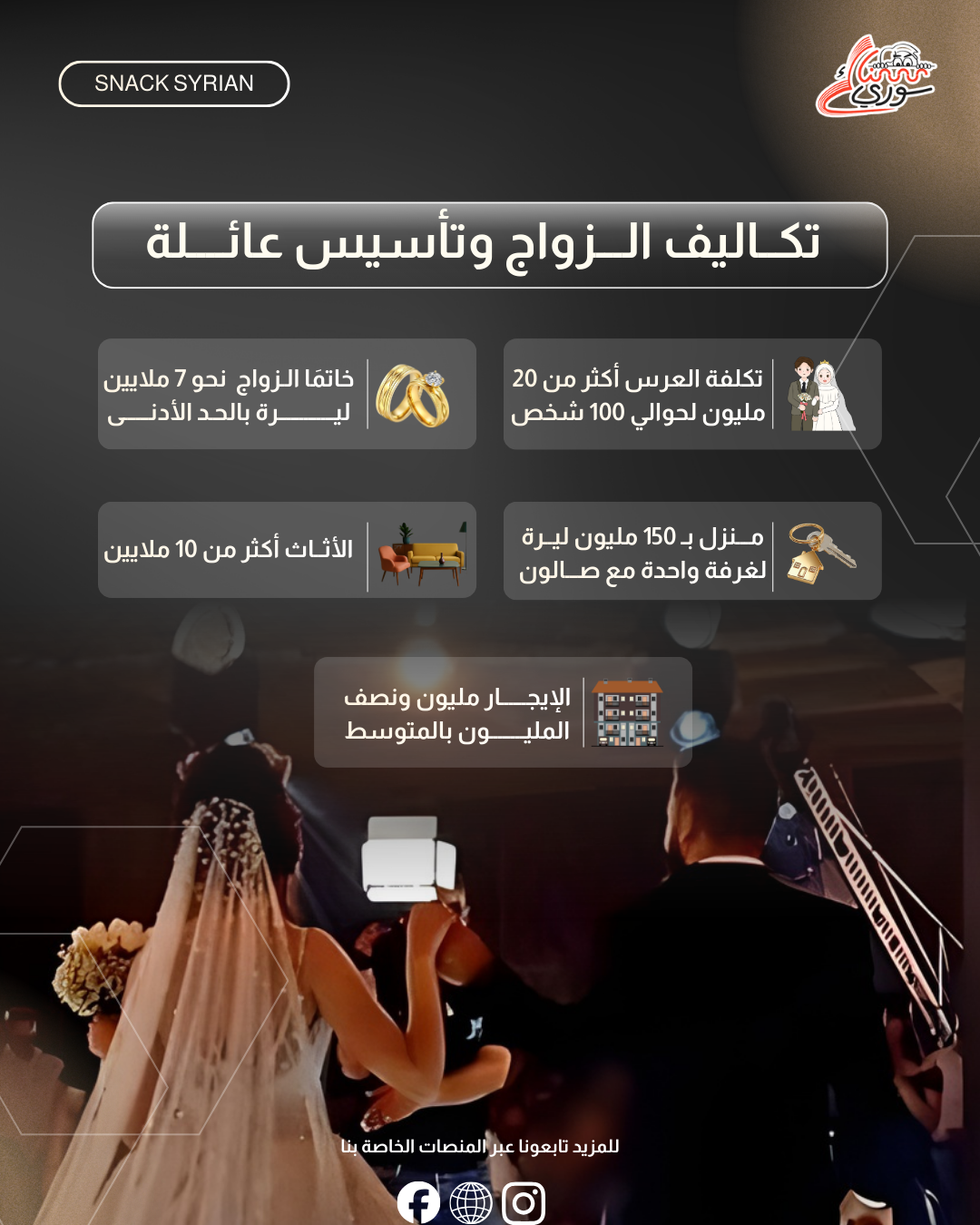 زواج العاشقان مرتبط بالقدرة على تأمين منزل الزوجية، ولم ينجحا به بعد، فالشاب كان يعمل في القطاع الخاص، وتعرض خلال السنوات الأخيرة لخسائر كبيرة بعد أن فقد أكثر من نصف رأس ماله القليل في آخر مشروع نفذه قبل سقوط النظام، والذي كان الشابان يعوّلان عليه لتأسيس حياتهما الزوجية.