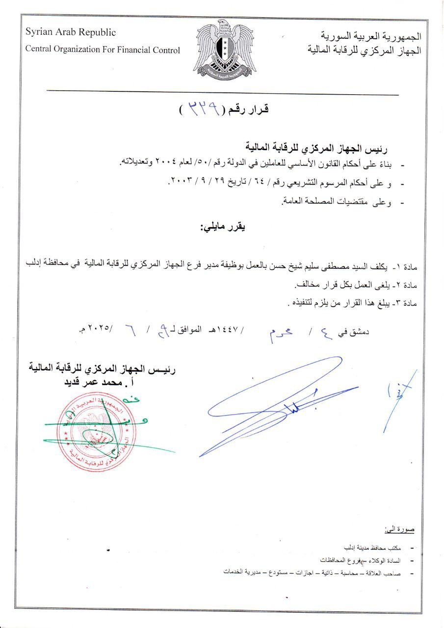 انتقادات لتعيين أبو عبد الرحمن الزربة رئيساً للرقابة المالية .. الولاء يتفوّق على الكفاءة