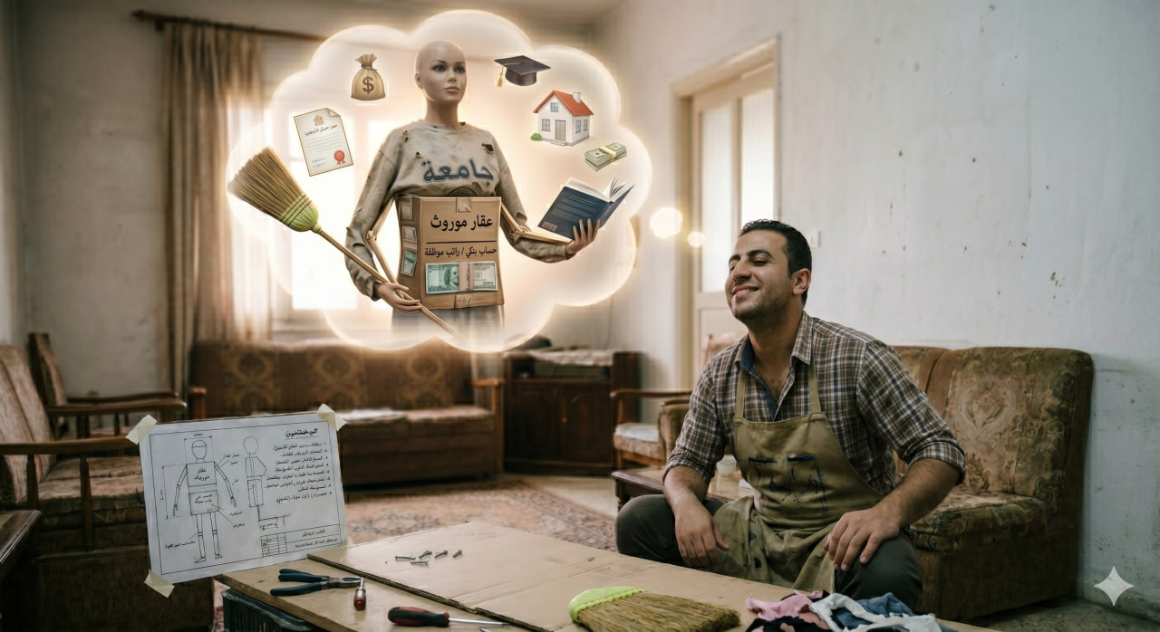 يعيش الشاب “نضال العايش على حسابها” قلقاً حقيقياً بسبب تأخر زواجه، رغم أنه، بحسب قوله، لا يطلب شيئاً مستحيلاً، فقط فتاة محترمة، متعلمة، جميلة، موظفة، بيتوتية، لا تخرج كثيراً، لا تملك صديقات، ولم تحب أحداً قبله، ويفضل أن تكون قد ورثت بيتاً أو قطعة أرض “حتى لا يبدأوا من الصفر”، (هو لا يبحث عن زوجة، بل عن مشروع إسكان اجتماعي مع خدمة تنظيف).