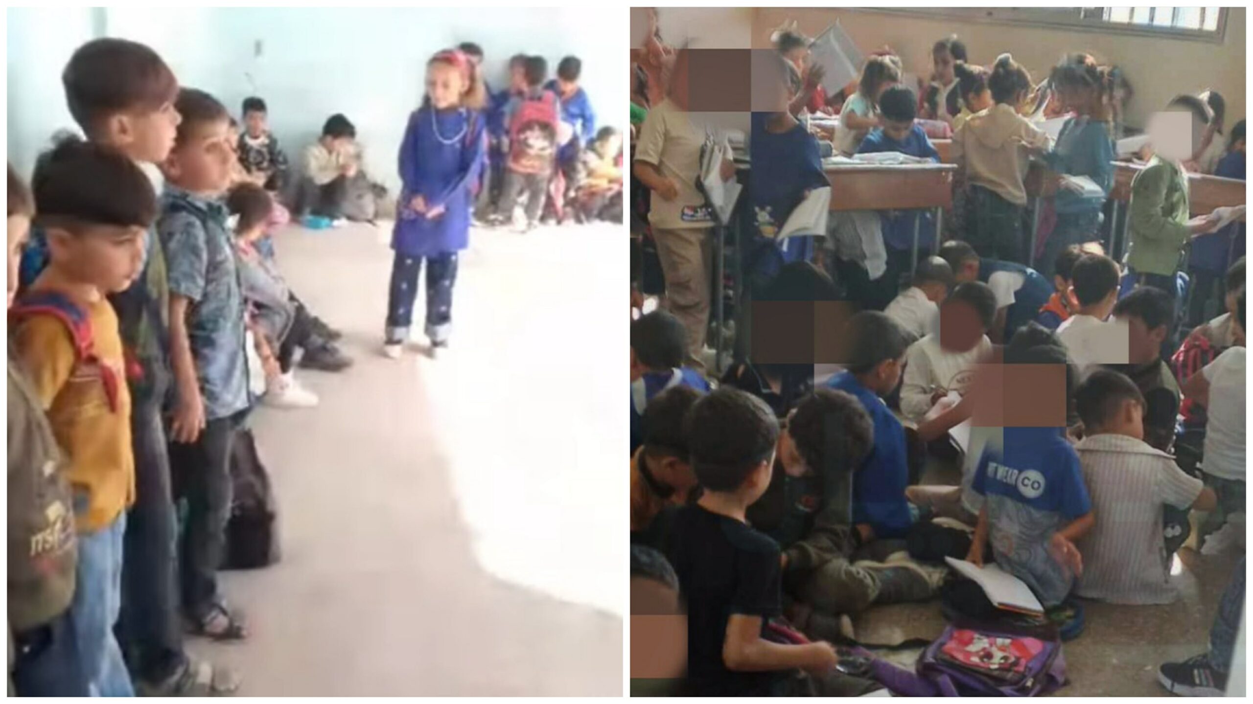 تداولت صفحات محلية عبر وسائل التواصل صورةً قالت أنها من إحدى مدارس “حلب” يظهر فيها طلاب المرحلة الابتدائية جالسين على أرض الصف لعدم كفاية المقاعد.