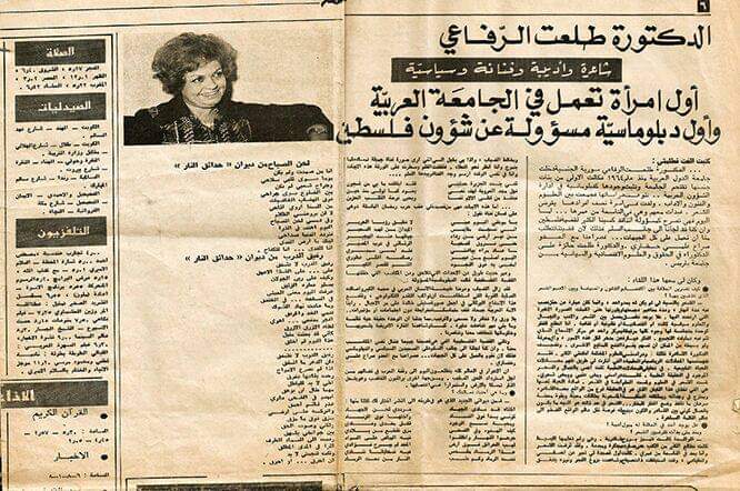 وفي عام 1964، أصبحت طلعت الرفاعي أول امرأة سورية وعربية تمثل بلادها في جامعة الدول العربية بدرجة وزير مفوض، وتولت ملف الشؤون الفلسطينية، وانتخبت لاحقاً أميناً عاماً مساعداً لاتحاد المغتربين العرب في جنيف، وارتبط اسمها بخطاب نسوي صدامي تجاوز التمثيل الرمزي إلى المطالبة بتغيير تشريعي واجتماعي مباشر.